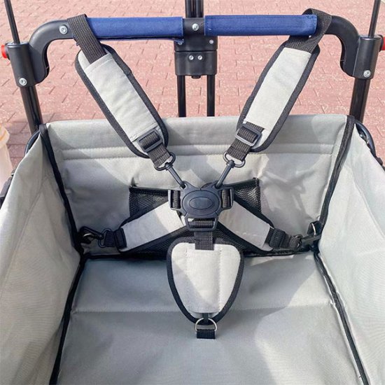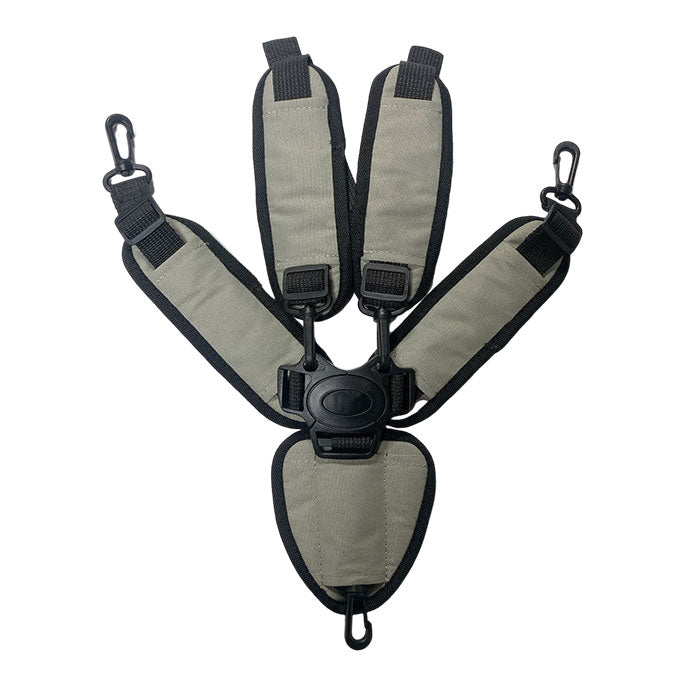 5点式の安全設計。左右のバックルと下部のクリップでしっかり固定